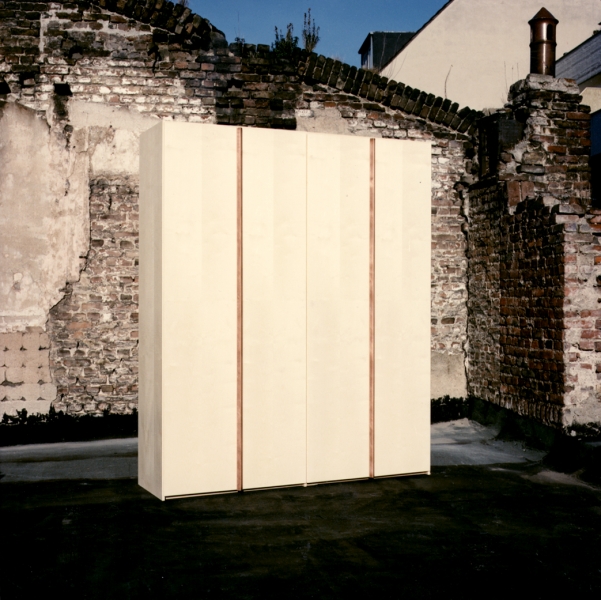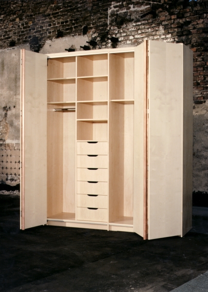 Dieser Kleiderschrank hat zwei doppelte Zieschwenktüren. Mit einem Griff ist der halbe Korpus geöffnet und erlaubt, mit dem zweiten Griff den Beginn der Auswahl... Wenn Sie nicht drei Hände benötigen wollen, um ein Kleidungsstück zu erreichen, dann stimmen wir Design und Funktion aufeinander ab.